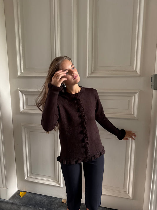 Sold outKNITTED FRILL CARDIGAN BROWN