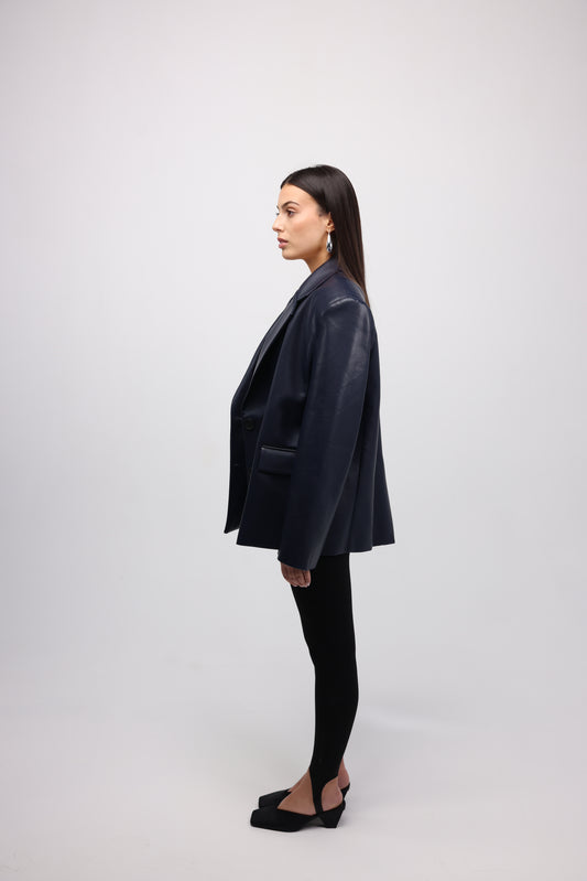 Sold outNAVY VEGAN LEATHER BLAZER