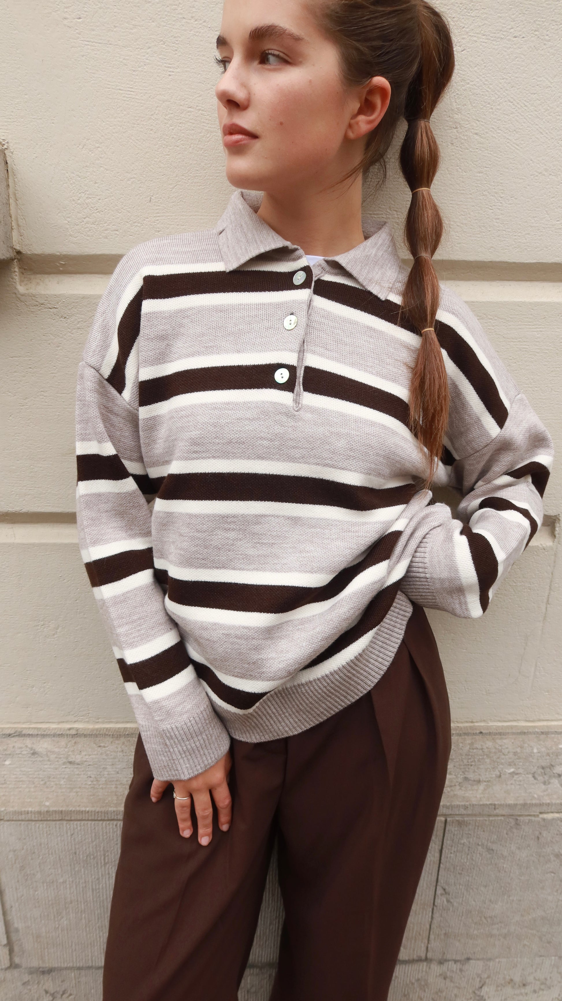 STRIPED POLO KNIT – BROWN GREY