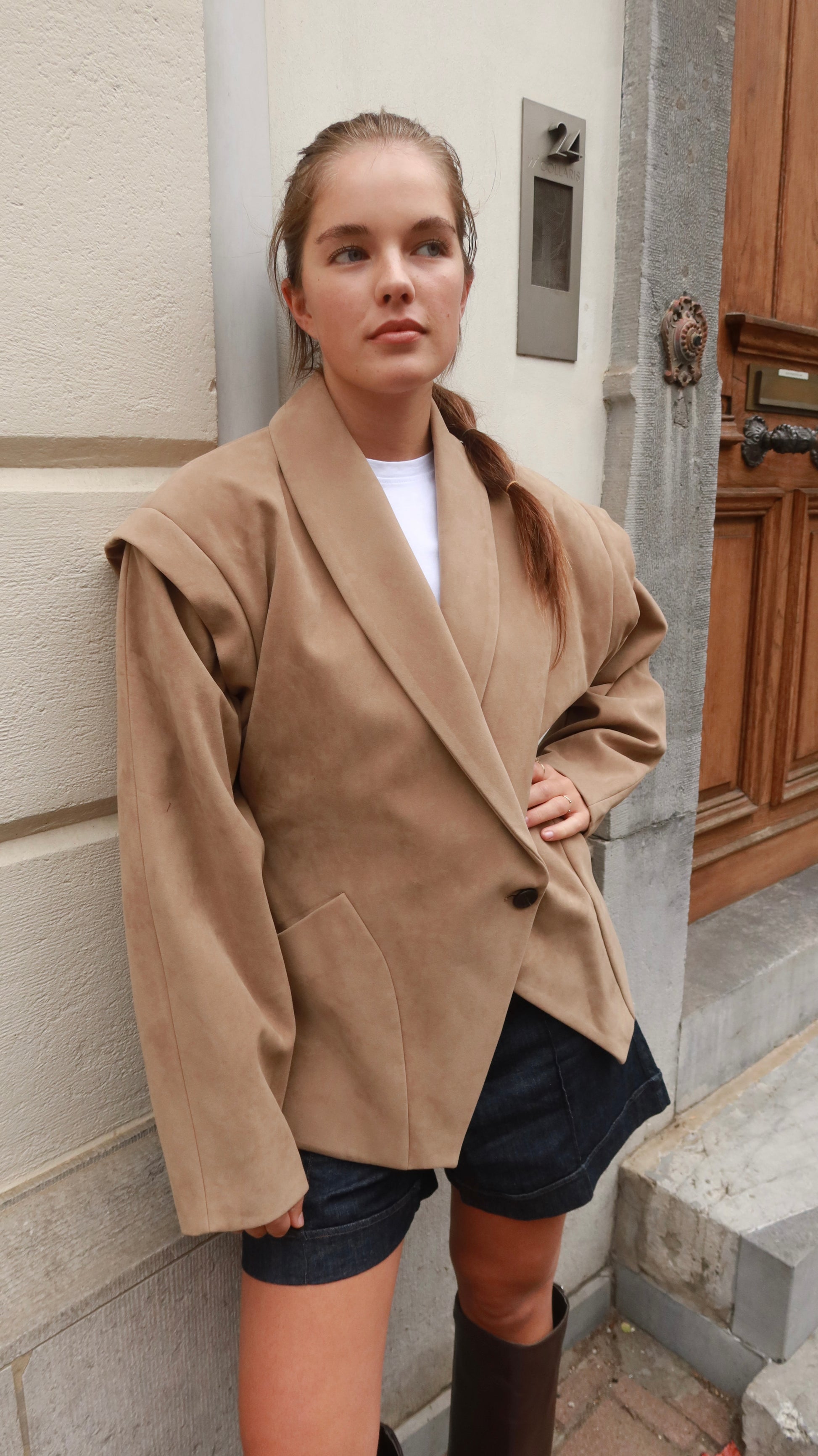 Elevate your wardrobe with the Suede Sculpted Blazer — a bold yet refined piece designed to redefine modern tailoring. Crafted from premium suede fabric, this blazer features structured shoulders, a deep lapel, and an architectural silhouette that creates effortless sophistication.