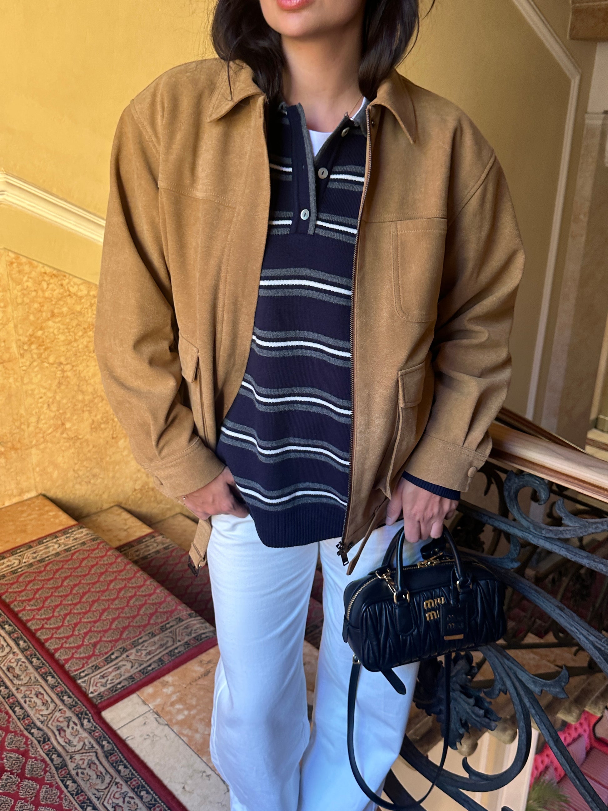 A timeless wardrobe essential with a modern edge. The Utility Suede Jacket is crafted from high-quality imitation suede, offering a soft touch and refined structure. Designed in an oversized fit, it features utility-inspired flap and patch pockets, a concealed front zip, and adjustable cuffs and side tabs for a customizable silhouette. A versatile piece that elevates both casual and tailored looks with effortless style.
